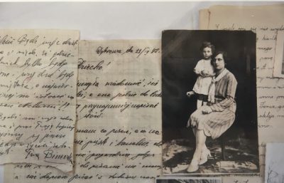 - Collage, Molly Applebaum with her mother Sarah Weissenberg, approx 1934 with letters from the 1940s
